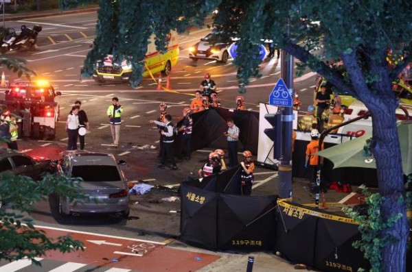 지난 1일 서울 시청역 인근 교차로에서 대형 교통사고가 발생해 경찰과 구조대원들이 현장을 수습하고 있다. [사진=연합뉴스]