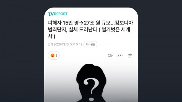 - 이전글tvN ‘벌거벗은 세계사’, 캄보디아 범죄단지 실태 집중 조명 26.03.19