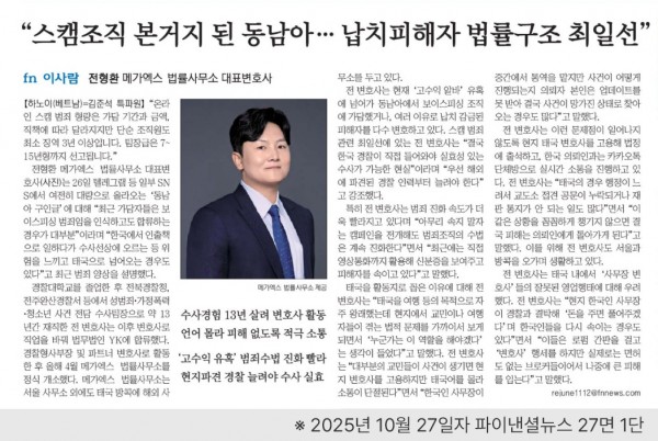 ※ 출처: 파이낸셜뉴스 하노이(베트남)=김준석 특파원, 「[fn 이사람] "스캠조직 본거지 된 동남아… 납치피해자 법률구조 최일선"」, 2025년 10월 26일
