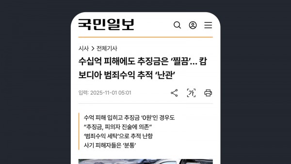 ※ 출처: 국민일보 조민아 기자, 「수십억 피해에도 추징금은 ‘찔끔’… 캄보디아 범죄수익 추적 ‘난관’」, 2025년 11월 1일